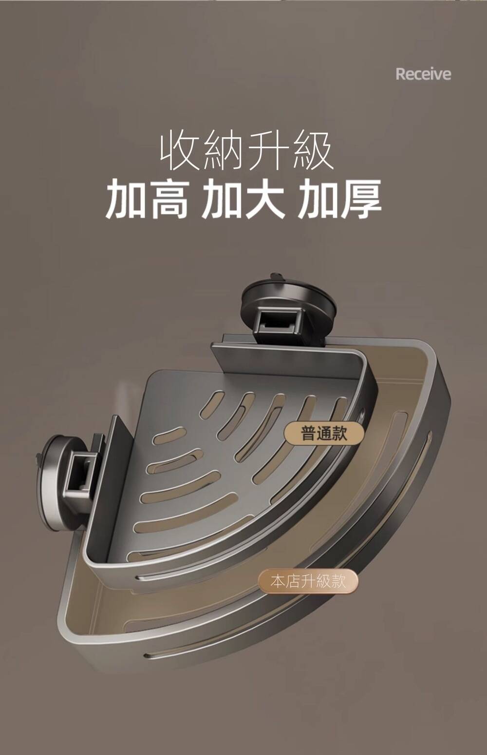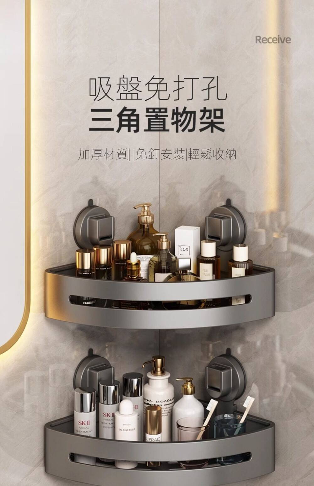 15分鐘前自帶吸盤,可隨時移動重復使用的置物架 免打孔廚房浴室衛生間三角置物架多用途壁掛收納架毛巾架 - 【超夯下殺】買一送二,共三入組 NT$999