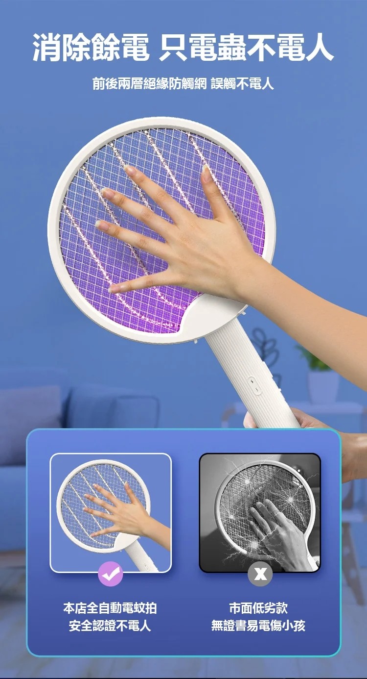 4分鐘前熱賣 四合一多功能電蚊滅蚊拍,立式/壁挂/手持式/可摺叠,雙效自動滅蚊! - 【限時下殺】1入組-NT$990